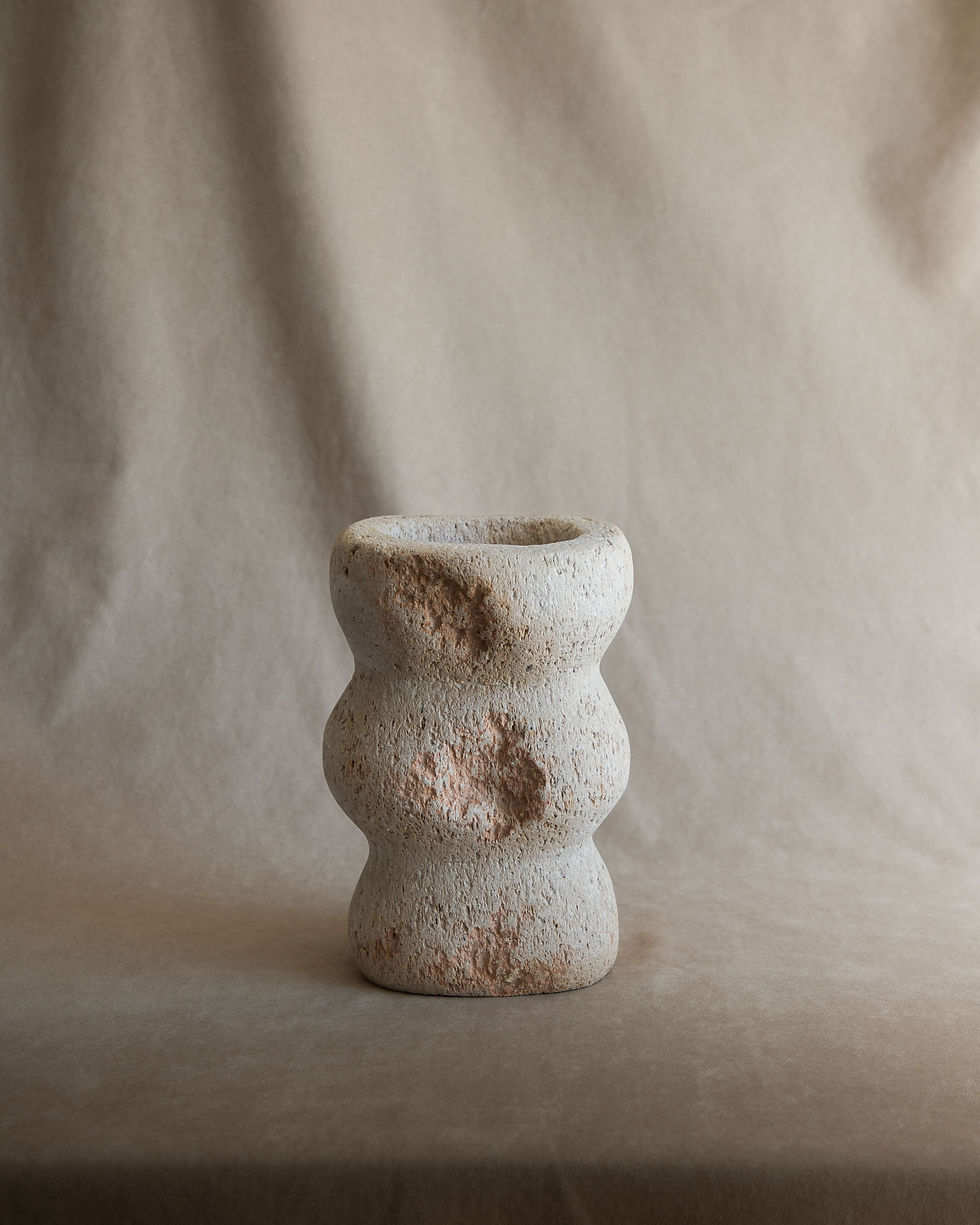 Dimensions may vary slightly due to the hand-carved nature of the pumice stone. Natural tones and veining are inherent to the material, making each piece unique.